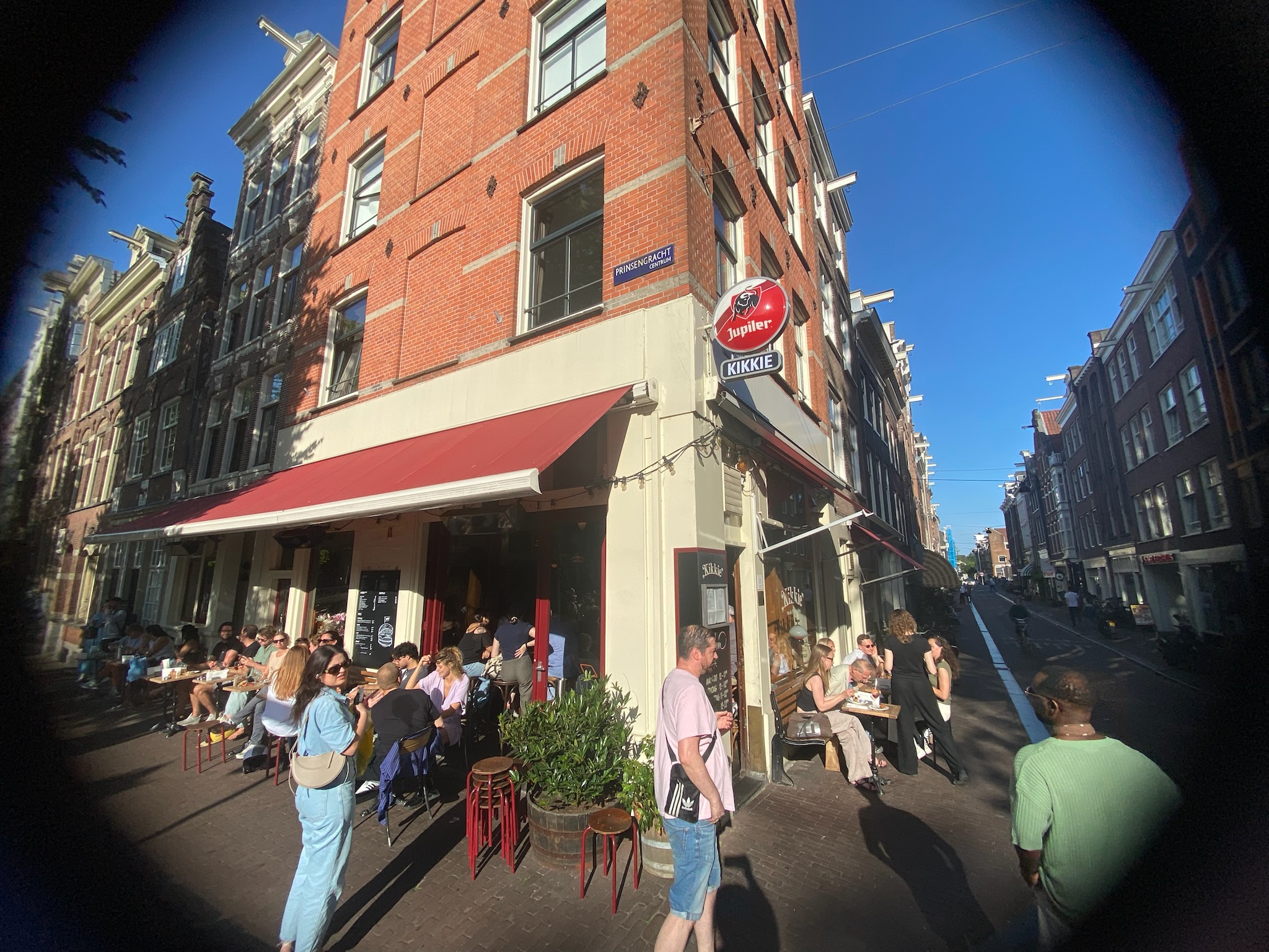 Kikkie is een klassiek bruin café maar dan met een eigentijdse twist. Het is er gezellig en knus waarbij veel gebruik is gemaakt van houtaccenten. Wel vonden we de keuze van veel muurdecoratie ‘interessant’ te noemen, bij gebrek aan een beter woord. Op het terras kon men nog genieten van een street performance. Vanwege de ligging in het centrum is dit ook wel een plek waar veel toeristen op af komen.