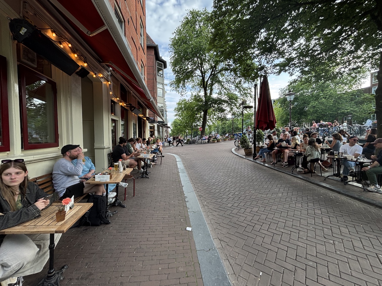 Wij kwamen op een zeer zonnige woensdagavond en dat was te merken. Zeer druk terras en personeel dat haar stinkende best deed om iedereen van een plek te voorzien, maar ze bleven vrolijk en vriendelijk. Helaas begonnen we binnen maar vonden uiteindelijk toch nog een plek op het terras om van ons laatste biertje te genieten.