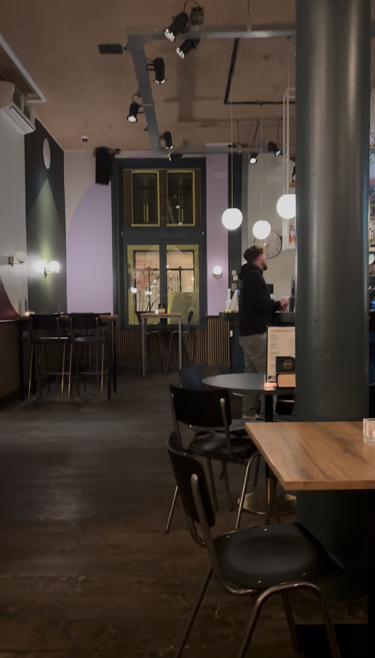 Bij binnenkomst stap je een grote ruimte binnen wat voorheen de kantine van het hostel was. De inrichting is op zich prima. Een bar, houten vloeren en tafels, zachte tinten en een open opzet maken het een leuke plek om te zitten. Het heeft iets weg van een American Diner maar dan subtieler. Wat overigens niet subtiel is, en zelfs irritant, is de walgelijke muziekkeuze en deze staat ook structureel op standje festival. Ze weten het voor elkaar te krijgen dat je hier na het eten liefst zo snel mogelijk vlucht. Hostel or just hostile?
